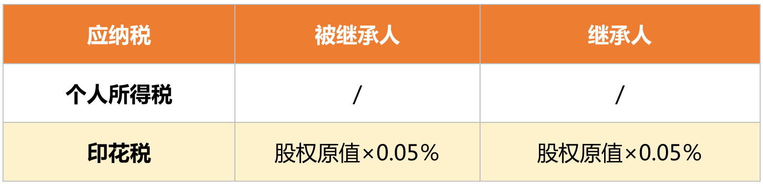 (二)印花稅:遺囑繼承、直系親屬間贈與股權均需繳納印花稅
