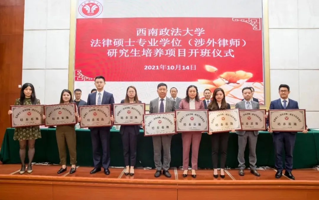 2021年10月14日,西南政法大學首屆法律碩士專業學位(涉外律師)研究生培養項目開班儀式在西政渝北校區毓才樓一樓學術報告廳舉行。會議舉行了授牌儀式,中豪入選西政法律碩士(涉外律師)研究生培養項目培養基地,本所紐約辦公室副主任、合伙人呂睿鑫代表事務所接受授牌。