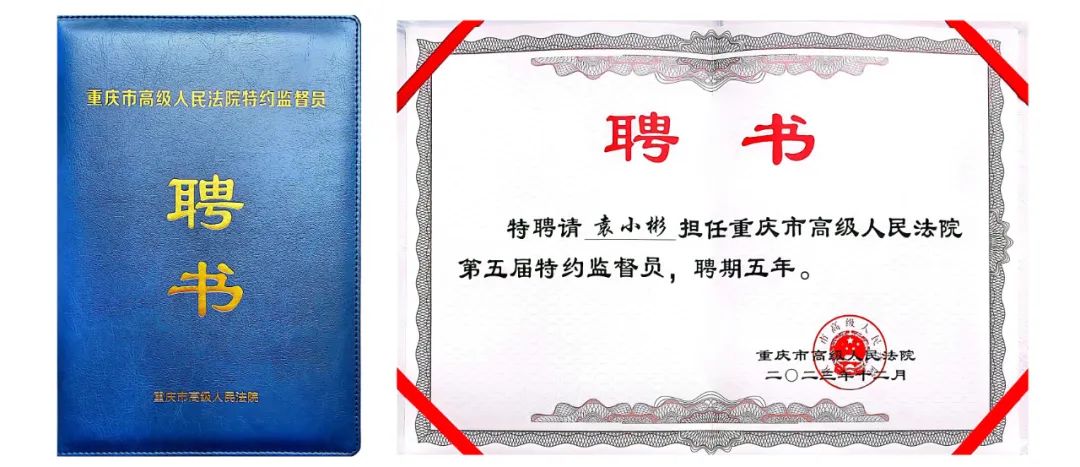 近日,重慶市高級人民法院第五屆特約監(jiān)督員聘任會議在市高院召開。副院長王中偉主持會議并通報2023年全市法院工作情況,政治部主任莫紹勇對《特約監(jiān)督員工作規(guī)則》作說明,院長李永利為特約監(jiān)督員頒發(fā)聘書并講話。管委會主席袁小彬有幸受聘為市高級人民法院特約監(jiān)督員。