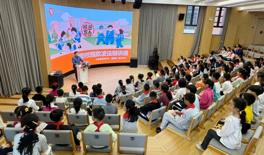 2024年4月10日,顧問律師湯偉佳為江北嘴實驗學校舉辦了預防校園欺凌法制講座,江北嘴實驗學校共有1000余名師生通過現場或直播方式收聽講座。講座內容豐富有趣,同學們積極互動,現場學習氣氛熱烈。