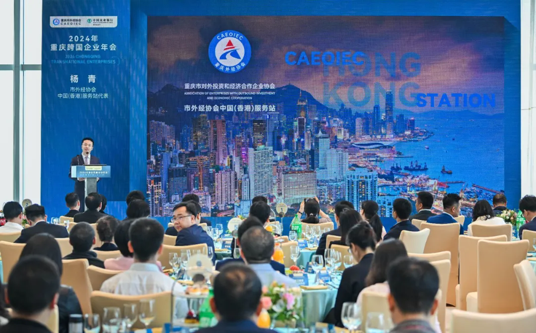 2024年4月25日,為貫徹落實國家“一帶一路”倡議,深入實施國際市場開拓計劃,助力企業進一步拓展增效“走出去”,促進國際投資合作,共謀發展,由重慶市商務委員會指導,重慶市對外投資和經濟合作企業協會主辦、中國農業銀行重慶分行聯合主辦的“2024年重慶跨國企業年會”在重慶舉行。香港辦公室主任楊青被聘為重慶市外經協會中國(香港)服務站代表,并就中國(香港)服務站服務工作清單進行發言。