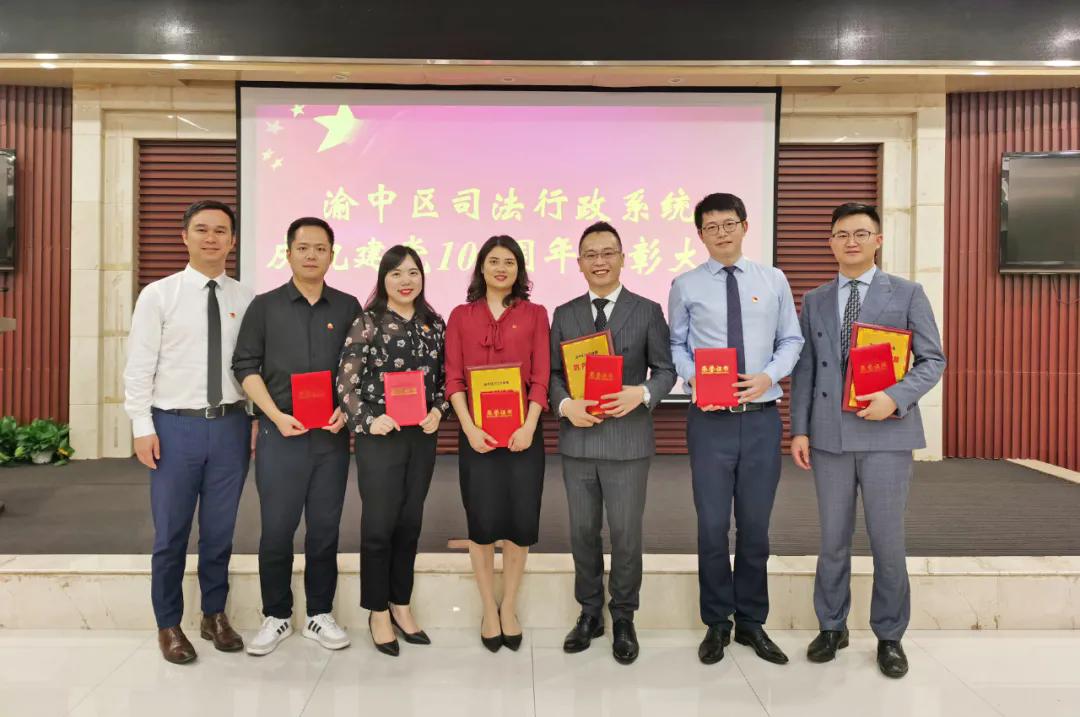 為表彰2020年度表現突出的律師事務所、律師、黨員、黨務工作者,樹立律師執業標桿、黨員先鋒模范,2021年6月25日,重慶市渝中區司法局、重慶市律師協會渝中區律師工作委員會舉行了“渝中區司法行政系統慶祝建黨100周年表彰大會”。經過層層選拔,合伙人文建、宋琴、蔣官寶憑借其專業的服務能力,分別榮獲“2020年度渝中區優秀律師”“2020年度渝中區優秀女律師”“2020年度渝中區優秀青年律師”;合伙人江小舟、周鵬憑借其黨員先鋒模范作用,榮獲“2020年度渝中區優秀黨員”;黨委組織委員楊彥菁憑借其突出的黨務工作能力,榮獲“2020年度渝中區優秀黨務工作者”。