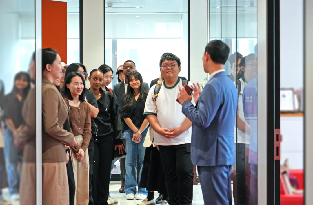 活動伊始,在肖主任的帶領下,同學們首先參觀了中豪接待區、辦公區以及文化長廊,切身感受了中豪獨具匠心的藝術空間,西方藝術油畫與東方美學交融的辦公環境打破了傳統律所嚴肅沉悶的印象。手寫書法展示律所訓言,別具一格的藝術設計與智能化辦公系統完美相融,構建出兼具專業質感與人文溫度的法律空間,令海外學子直觀領略到中豪的藝術理念與國際視野。